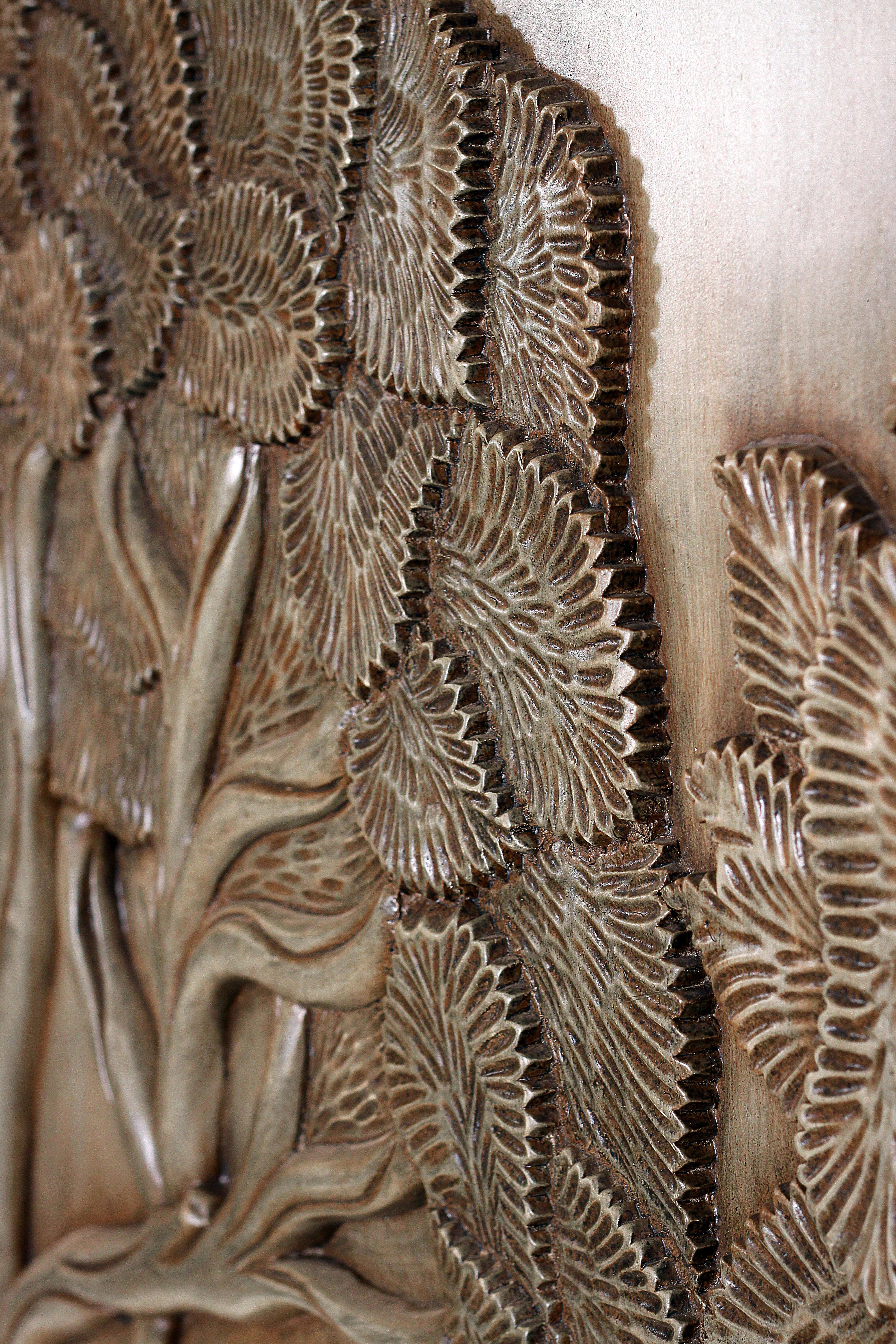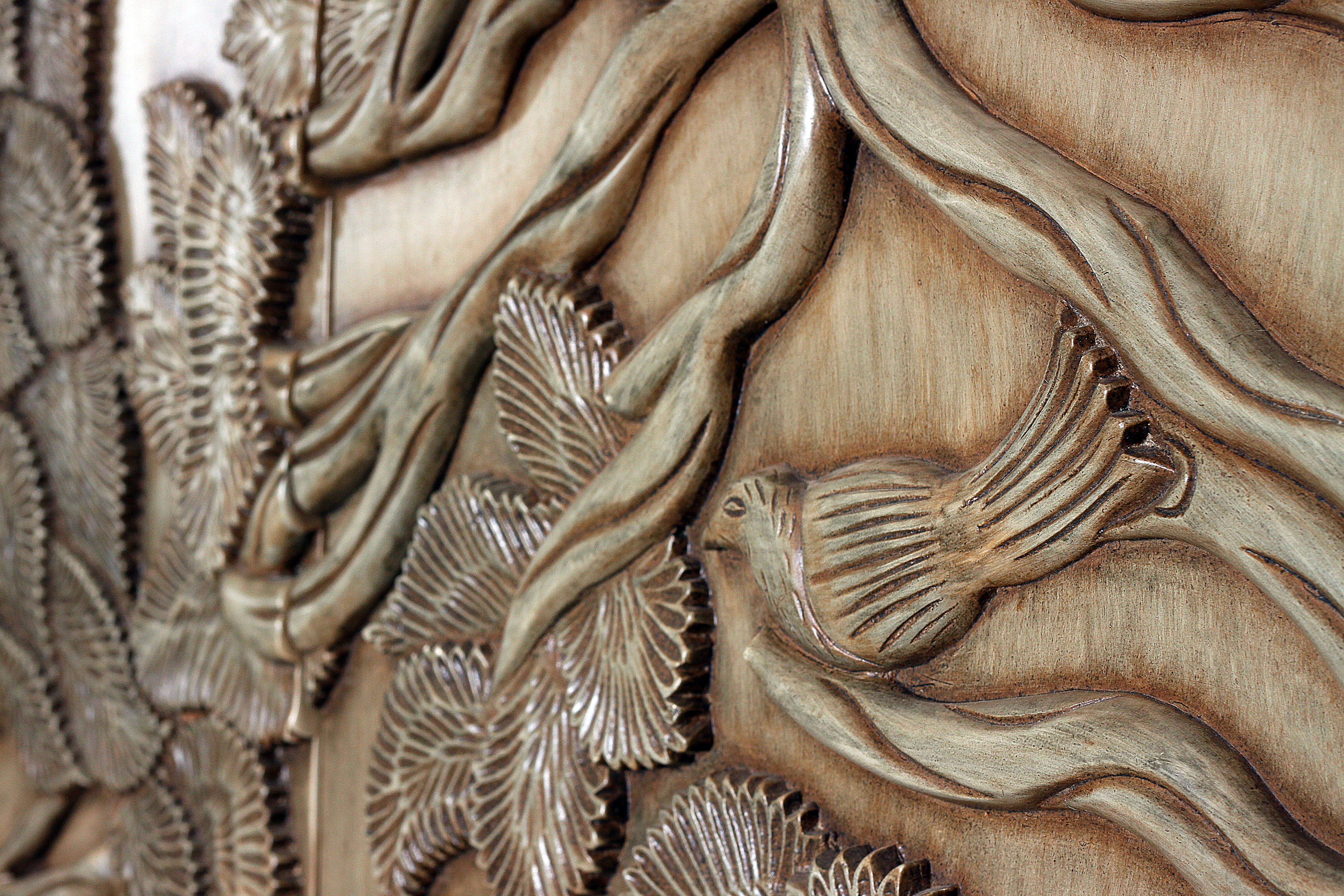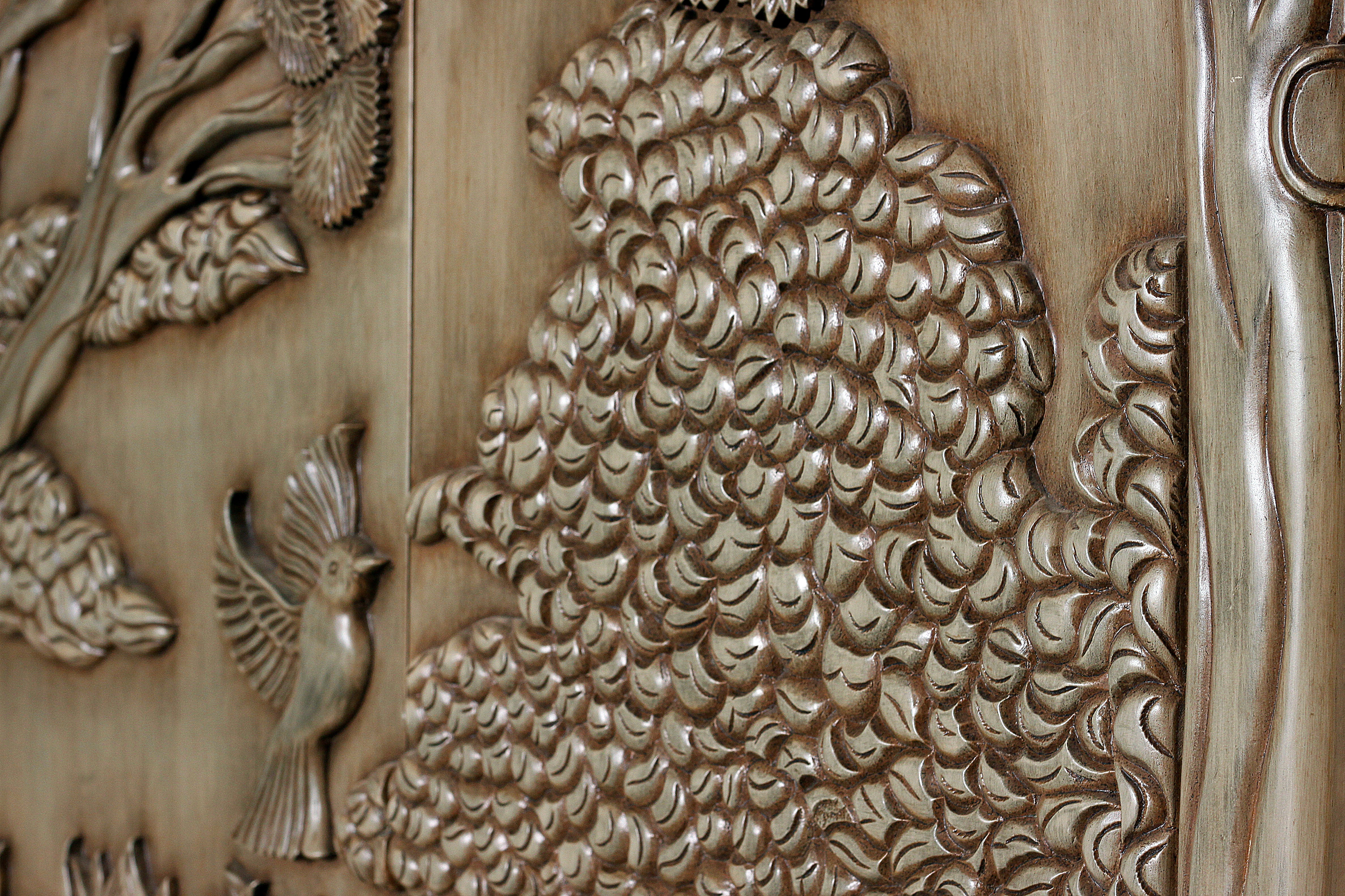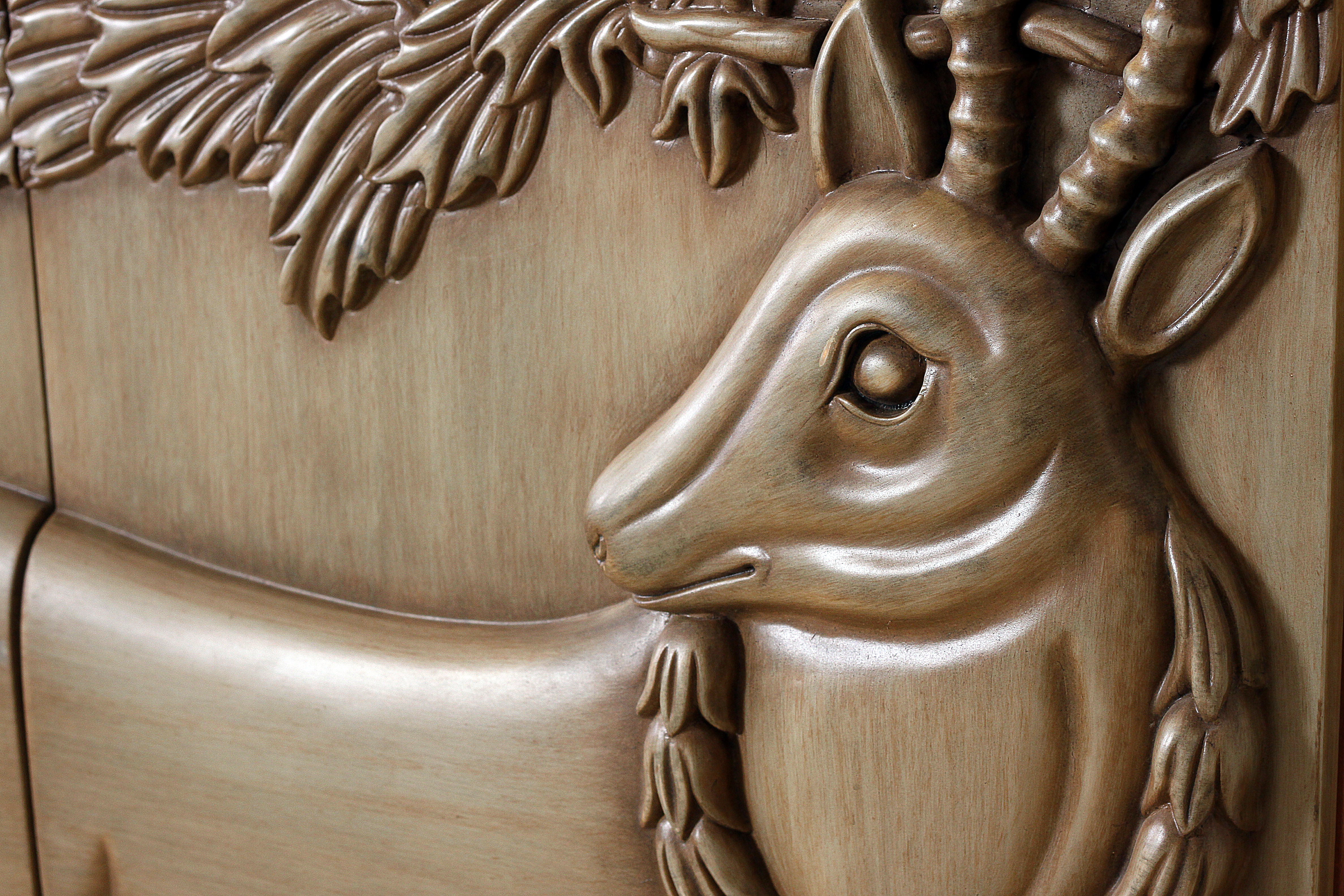 The Ghazal dining draws its inspiration from the finest international arts and design references, translated into a distinctive contemporary piece for your dining space. Its true added value lies in the thoughtful composition of Etimoe wood veneer, showcasing its rich root texture across the entire body of the sideboard. This creates a warm, organic expression of genuine brown wood tones, beautifully balanced with the subtle olive tint of the Ghazal portrait—resulting in a harmonious blend of art, nature, and refined craftsmanship.